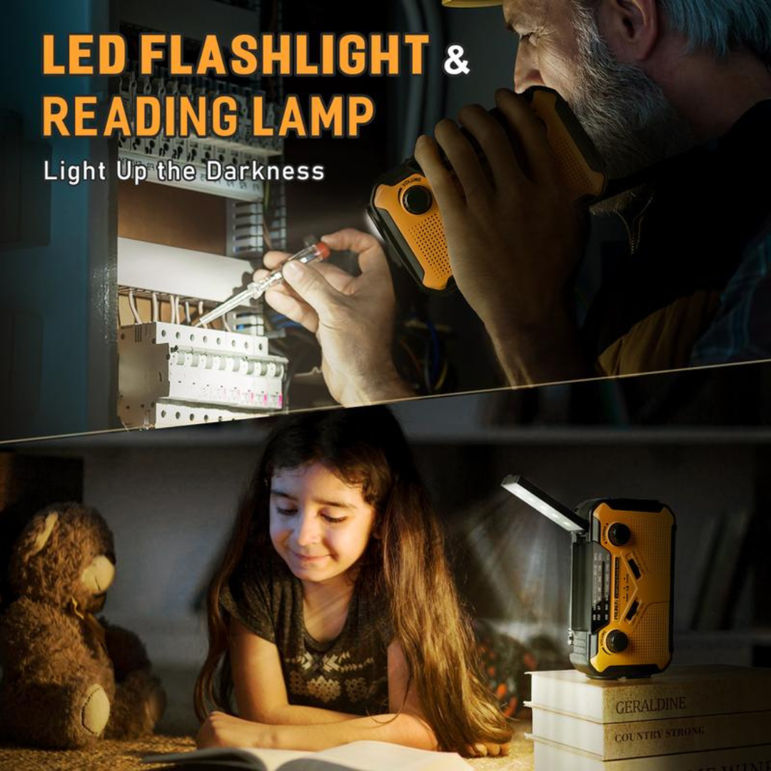 This powerful 11100 mWh Emergency Weather Radio gives you everything you need to stay informed, powered, and prepared when it matters most. Equipped with AM, FM, and NOAA weather reception, a high-capacity internal battery, and multiple charging options including solar, hand crank, and USB, it’s built to perform when power and communication are compromised. With a bright LED flashlight, reading lamp, and SOS alarm, this all-in-one device delivers immediate reliability the moment you turn it on. Whether facing storms, blackouts, camping trips, or emergency situations, this radio brings dependable protection and peace of mind to every environment.