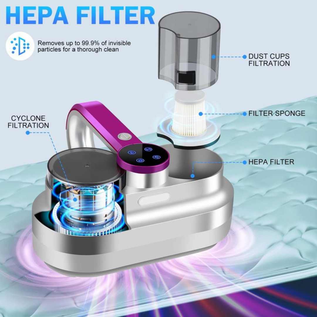 This powerful Bed Vacuum Cleaner Mattress Vacuum with UV gives you everything you need for a deeper, healthier clean—right where you sleep. Equipped with 8000 Pa strong suction and a built-in UV light, it pulls dust, debris, and allergens from deep within fabrics while helping reduce dust mites and microbes on the surface. Compact, cordless, and easy to use, it delivers instant results the moment you turn it on. Whether you’re cleaning mattresses, pillows, sofas, or upholstery, this vacuum brings professional-level hygiene and peace of mind to your home.